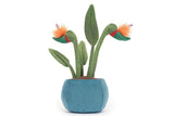 Amuseable Bird of Paradise is an elegant plant with a teal suedette pot filled with fluffy cocoa soil. With sturdy green stalks, fluted leaves, and red, green, and purple flowers with fuzzy orange petals, this plant makes any space divine! *Maximum of 2 per order