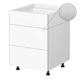 Kitchen Base Cabinet 3 Drawer 600mm Flat Pack - White Woodgrain