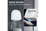 - Intelligent Infrared Sensor: Equipped with an intelligent infrared sensor, the dryer detects your hands within 20cm and instantly starts blowing hot air in just 0.5 seconds.