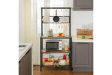 Use this multifunctional kitchen rack for your microwave, coffee maker, toaster, plates, cookbooks, utensils, and more. How you use all your new-found space in your kitchen with this large kitchen rack is completely up to you. The strong steel frame and engineered wood shelves can handle it.
