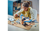 The top of the spaceship model lifts off to reveal a detailed interior with 3 distinct areas: a flight deck with room for 3 minifigures, a communal area with an additional seat and storage space for weapons, and a rest area with a bed and a tape deck (a key element in the films). There are Star-Lord, Gamora, Drax and Rocket minifigures, plus a Baby Groot figure. A stand allows the spaceship to be displayed. The LEGO Builder app lets kids zoom in and rotate models in 3D using their digital device.