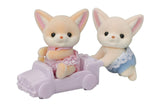 Set featuring the Fennec Fox twins, known far and wide for their big, pointy ears. Includes Fennec Fox twins and a pushcart. The figures’ heads can be moved. Either of the twins can in ride the pushcart. The included pushcart can be attached to pushcarts from other twin sets.