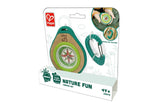 This compass and carabiner made of bamboo and recycled plastic, children are ready for the great outdoors. The carabiner can handle 10 kilograms.