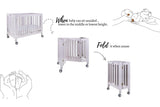 Arora Folding Cot has a unique design that protects an easy open and fold system. It can be used daily with complete ease. A solid mattress base offers even better support to the folding cot and also is adjustable to 2 levels. When your baby grows up, you can adjust to the bottom level and turn the baby cot into a playpen.