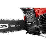 The 53cc engine delivers ample power and torque, combined with the Oregon bar and chain ensuring efficient, clean cutting. The auto chain lubrication extends the life of the chain and bar that permits faster, cleaner cutting plus the anti-vibration reduces user fatigue. For additional safety, this unit is also fitted with a safety chain brake, when activated the chain will stop running.