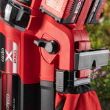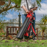 A powerful 36V Brushless motor eliminates friction and wear for more efficient operation which means cooler motors and longer runtime. Features include an electronic speed control with a practical LED display that shows the speed selected and easy-to-reach Turbo Boost Button* for greater control when clearing or vacuuming different materials from various garden areas. A mode selector lever allows quick change over from blower to vacuum-mulcher mode. As a vacuum, the 10:1 mulching function with the additional metal knife will reduce large piles of your garden waste into easily manageable mulch, while the large 45-litre collection bag with a viewing window collects all your material for easy disposal and composting straight to your garden. A shoulder strap, height-adjustable guide wheels, Sure Grip handle and additional front handle improve user comfort and control when manoeuvring around the garden. Hang the unit in your garden shed with the wall holder for easy, space-saving storage.