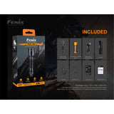 Included Fenix ARB-L18-2600 li-ion battery, USB Type-C charging cable, spare O-ring