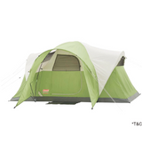 With enough room for 2 queen-size airbeds, the Coleman Montana 6-Person Tent offers ample sleeping space for the whole family. This camping tent is designed to keep you dry thanks to its WeatherTec system that features a tub floor with patented corner welds, inverted seams, and a covered zipper to help keep water out. An extended door awning creates a dry space to store gear and enter the tent, while storage pockets help you keep small items organized.