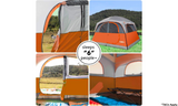 Easy Set-Up - No particular skills needed, 2 people could set up the tent easily in 3 min. The camping tent comes with a smooth 2-way zipper and well-made poles. The carry bag is 24.6 x 8.26 x 8.26 inches, You could restore the tent in the carry bag easily.