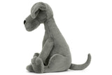 As mighty as his name, meet Zeus Great Dane! This leggy pup has blue-grey fur, standout brows and soft, floppy ears, with a huge black nose for sniffing out fun. Zeus has beautiful rumpled jowls, stitch-detail toes and a peaceful pose. A thoughtful dog with a loyal heart.