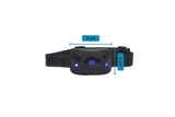 - Backlit LCD display shows intensity level and battery
