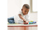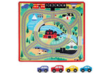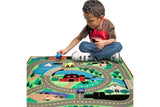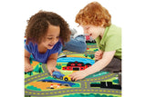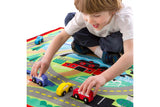 This colorful road rug comes with four cars to drive on looping streets and lanes – and its varied terrain makes it ideal for trains, chunky play figures, and vehicles of all kinds!