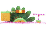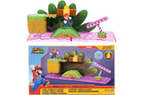 This Soda Jungle Playset lets you traverse the infamous level inspired by the Super Mario video games. Explore this set which includes multiple interactive pieces and a 2.5-inch Mario figure. Help Mario jump from platform to platform to evade the purple poison. The various levels and platforms make great places to display your figures afterwards. Boost your Super Mario world collection with authentic figures, inspired by the Super Mario video games, that are sure to please kids and collectors alike. Ages 3 and up.