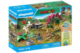 Uncover prehistoric secrets with the PLAYMOBIL Research Camp with Dinos! This exciting set features a Stegosaurus, a sneaky Deinonychus, and two explorers on a mission to study dinosaurs. Equipped with an off-road vehicle, research gear, and dinosaur eggs, kids can dive into thrilling adventures. Perfect for children aged 4 and up, the set includes knowledge cards for learning fun, making it the ultimate dino play experience. Step back in time with the PLAYMOBIL Research Camp with Dinos! This exciting playset takes kids on an adventurous journey to uncover the secrets of the prehistoric world. Two brave explorers are ready to set off in their off-road vehicle to explore a jungle filled with dinosaurs. They’ll encounter a mighty Stegosaurus and a clever Deinonychus trying to steal dinosaur eggs.