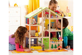 Includes four room sets of furniture: Master Bedroom, Family Bathroom, Media Room and Kitchen (dolls sold separately).
