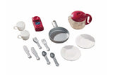 A super kitchen playset with a play stove, oven, refrigerator, coffee pot and more. Kids will love pretending, sharing and manipulating the working doors and accessories. The kitchen play set includes play plates, forks, spoons, knives, cups and more. Made in USA with US & imported components.