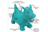 Less of the Fire Breathing Scary variety , more of the Cuddly , ‘he’s my favourite dragon’ variety. Many a Brave Knight has conquered our Happy Hopperz® Dragons and have been seen riding proudly atop the tamed beasts across living room and bedrooms all over the world.