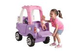 This pink and purple ride-on toy truck is just right for toddlers! The foot-to-floor ride on is easy to start and stop. Parents will love the push handle on the roof and little kids will love the working door and tailgate! Kids can use the truck outside and inside.