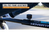 Using the rubber straps, one can quickly strap in the Hovertrax to assemble the go-kart and adjust the length of the frame from 26” to 34” (650mm–860mm). Rubber-gripped hand levers deliver 360-degree spinning action!