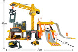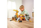 Manage your own construction site on three levels with crane, tunnel and garage. The bright colours and great details of this 65 piece set will set kids hearts aflutter. The 360 degree turnable crane with crane arm and claw brings the materials safely to the worksite. You can also use the cranes wrecking ball to demolish walls. The rubbish shoot makes the desposal a walk in the park. Numerous additional accessories like warning signs and cones complete the construction experience.