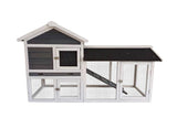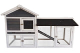 Solid Wood Chicken Coop & Rabbit Hutch - Light Grey & White