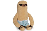 Pusheen’s friend Sloth is ready for fun in the sun in a pair of tied up blue bathing shorts and embroidered sunglasses.