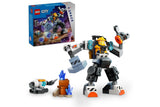 - LEGO® City space set includes an articulated mech suit with hammer and claw arms