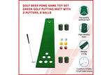 Golf Beer Pong Game Toy Set Green Golf Putting Matt with 2 Putters, 6 Balls