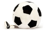 A goal scoring triumph of a gift for any football fan! Amuseables Sports Football is a stylish monochrome character created from tessellating soft fur panels, fine cord legs with knee high socks and sporting a pair of suede boots with embroidered stud and lace detail.