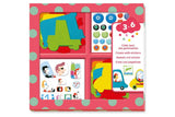 - The set contains 5 sheets of puffy stickers, 24 pre-cut felt vehicles and 3 sheets of wheels.
