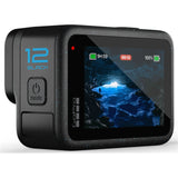 The GoPro HERO12 Black delivers next-level image quality, stunning High Dynamic Range (HDR) video, and up to double the runtime of its predecessor. Capture every adventure in crisp 5.3K resolution with Emmy® Award-winning HyperSmooth 6.0 stabilization, even in the most rugged environments. Waterproof to 33 feet (10m) and built tough, it's ready for anything—on land, in snow, or underwater. The new extra-large 8:7 aspect ratio offers maximum versatility for cropping, social content, and cinematic editing. Easily auto-upload footage to the cloud and get highlight videos sent straight to your phone, making sharing effortless.