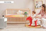 It has 1296p Full HD video quality and can pan and tilt between specific angles, allowing you to auto-track any motion detected. The SmarterHome™ app provides real-time monitoring and alerts, and the two-way audio and one-button call feature allows you to communicate with your baby.