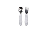 Set contains a fork and spoon. Do not leave baby unattended with product