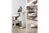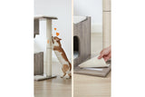 The greige wood veneer of this scratching post and the contrasting white fur pads give the cat furniture more style
