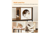 With a cat tree and a cat litter box enclosure in one, it offers an all-in-one spot for your fur friends to observe, play, relax, and answer nature’s call while taking up only a 22.6” x 19.7” corner—a true space saver