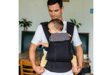 8-in-1 baby carrier. All-seasons all-positions. Includes infant insert, built-in headrest, sleep hood, waist belt pocket, removable lumbar support, and a zippered panel to reveal our signature 3D mesh for a breathable comfort.