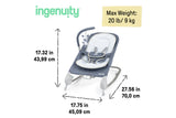 A happy belly = a happy baby! The first-ever, patent-pending Ingenuity Happy Belly Rock-to-Bounce Massage Seat Parker has integrated belly massage technology offering a circular massage motion to help soothe baby and provide relief from discomfort. Designed in the USA with expert-led medical advice, this seats belly massage rollers resemble a gentle fingertip massage and are safely activated by a parents push of a button and turn off automatically after 3 minutes of massage.