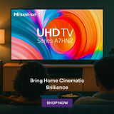 The Hisense UHD 4K Series TV features a 4K AI Upscaler that optimises picture quality and offers a premium viewing experience. Wide Colour Gamut generates over a billion shades and gradients for stunning image clarity and striking contrast. With high-end features such as Dolby Vision HDR and Dolby Atmos, it replicates the cinema experience at home. Game Mode Plus offers next-gen gaming with Auto Low Latency Mode (ALLM) and Variable Refresh Rate (VRR) that makes sure youre always ahead of the game.