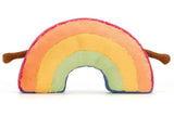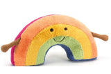 Amuseable Rainbow loves everybody, and welcomes one and all for big, colourful hugs! With pastel stripes in peach, yellow and turquoise, cordy arms and a goofy smile, this squidgy rainbow brightens up the day. A poppet full of pride!
