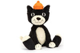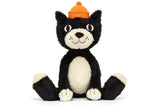Jellycat Jack is finally here! This tuxedo cat has soft tufty fur, huge stitched paws and a friendly smile. With a long curved tail and L-shaped paws, Jellycat Jack has a soft velour crown of iconic orange jelly!