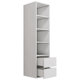 Wardrobe Wall Hung Tower with Shelves & Drawers White Woodgrain - 400mm x 1532mm