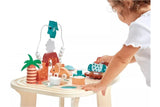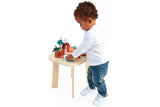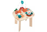 This activity table is packed with 8 exciting activities to keep your child entertained and engaged for hours. It comes equipped with a track for rolling the Triceratops car, a dinosaur egg clicker and spinner for auditory stimulation, a flying Pteranodon abacus perfect for counting , hatching dinosaur cogwheels for hand-eye coordination, a shape sorter and stacking palm tree for shape recognition and problem-solving and rotating distorting mirror for visual fun. All of these activities are designed to promote your child’s cognitive development and enhance their motor skills. Your child will be able to have fun while developing dexterity and imagination. Made from FSC wood, the table height is 32cm to make it easier for little ones to get to. With its engaging activities and eco-friendly design, this activity table is sure to become a favourite among both kids and parents alike.