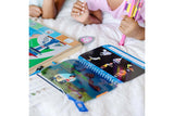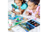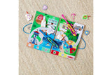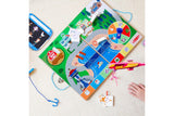 Place wooden play figures on the wooden fold-out game board, spin the spinner, and use the drone-shaped fishing rods with matching badges to hook and move the indicated character to its safe spot! Play against an opponent or work together to rescue all the characters! The Flashlight Finder Pup Pad offers more search-and-find activities. All pieces store in the wooden take-along case.