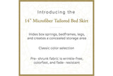 - Add a touch of sophistication to your bedroom with this 14” drop bed skirt, designed to fit any queen-sized bed and gracefully drape just above the floor.