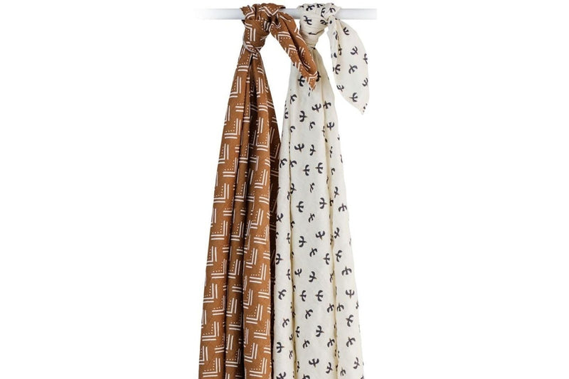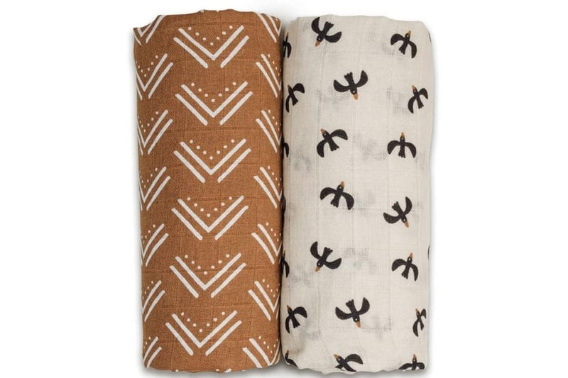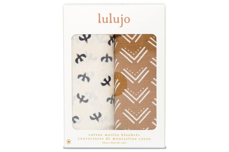 Lulujo: Cotton Swaddles – Mudcloth & Black Birds (2 Pack)