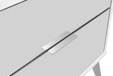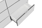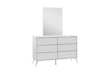 Features: Sophisticated Design: The BRAYA 6-Drawer Dresser features a rectangular-shaped mirror with reflective drawer fronts, creating a bold, modern aesthetic. Its sleek design brightens the space, adding an elegant touch to your bedroom decor. Durable and Easy Maintenance: Constructed with a scratch-resistant melamine finish, this dresser is built to withstand everyday use while maintaining its pristine appearance with minimal upkeep. Spacious and Sturdy: With six generously sized drawers, it offers ample storage for your belongings, while chrome-finished handles and sturdy metal legs provide both reliable support and a contemporary flair for long-lasting functionality.