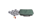 Our deluxe boule set is not only shiny and beautiful it guarantees family fun for hours on end. The set comes with eight 75mm diameter boules of polished alloy, one 35mm wooden jack, a measuring device that will settle any scoring disputes and a green canvas carrying bag that makes the game mobile and easy to transport.