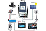 Wide range of maximum power point operating voltage, improved photovoltaic module utilization, rated charging power & charging current double automatic limiting function. Support 4 charging options: Sealed, Gel, Flooded and User.The isolated RS485 interface with standard MODBUS communication protocol and 5V power supply makes it easy for customer to expand the application, it support up to 8 charging in parallel to expand system and meet with different monitoring requirements, so that can be widely used for various applications, e.g. solar RV, household system and field monitoring etc.