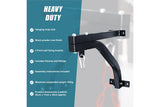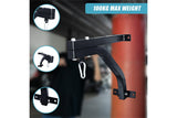This Wall Mounted Boxing Bag Rack is ideal for boxing enthusiasts! Mount this rack to any wall to help enhance your workout routine. With a maximum weight capacity of 100kg and a heavy duty steel construction this rack and withstand the right hooks and kicks of any MMA fighter! The four-point fixture and hanging snap lock ensure this wall mount remains stable as the punching bag withstands blows.
