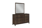 Features: Six spacious drawers: Provides ample storage space for clothing, accessories, and other bedroom essentials. Durable engineered wood construction: Offering a reliable storage solution for years to come. Sleek and contemporary design: Adds a modern touch to any bedroom decor, enhancing the overall aesthetic appeal of the space. Brown finish: Infuses warmth and richness into the dresser, creating a sophisticated look that complements various interior styles. Smooth-gliding drawer mechanisms: Enables effortless opening and closing of drawers, enhancing user experience and convenience. Spacious top surface: Offers additional display space for decorative items, personal belongings, or a vanity mirror. Square-shaped mirror for a modern touch: Enhances the contemporary aesthetic of your bedroom decor, adding a sleek and stylish element to the space. Complements the collection: Coordinates seamlessly with other pieces in the HOPKINS furniture collection, ensuring a cohesive and unified look in your bedroom. Adds depth and dimension to your bedroom: Reflects light and creates the illusion of more space, making your bedroom feel larger and more inviting. Mirror sold separately: Provides the option to include a mirror based on personal preference and space requirements.